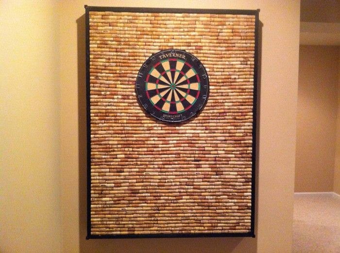 We never play darts at home, even though Bob has a kick-ass Sons of Anarchy dartboard.  Why?  Because we have pretty bad aim and we don’t want to wreck the walls of the basement after we put so much time and energy into repairing the damage from the previous tenants. So we want to put it at the cottage.  With a backboard made of corks.