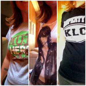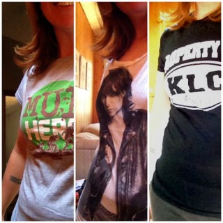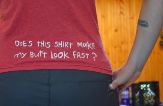 You know those items of clothing you have hidden in the back of your closet? The ones squished to the back of your drawers? The shirts that are a little too short or tight to wear respectably in public? The yoga or sweat pants that have started to pill from extensive wear because at the end of the day the thought of putting on anything in any way constrictive seems like cruel and unusual punishment? What about the any number of race or event souvenir shirts – shapeless, huge, stretched out, usually some hideous fluorescent colour with the event sponsors’ names taking up most of the back? Or those super-comfy capris that you thought were really funky when you bought them because they had the seams on the outside? Yeah, the ones that because the seams are on the outside, you constantly put on inside out so that you parade around the mall, on the bus, out to dinner with the lovely tag sticking out of the back, flapping in the wind so that not only does the entire world know what size your ass is but that you’re a complete moron for putting them on inside out and going outside the house in them? You know those pieces of clothing you bought because you thought they embodied the bold and adventurous person you wanted to be and then when it came time to actually wear it, you stood in front of the mirror for forty minutes trying to convince yourself that you were cool enough to pull it off? Then changed into something else. And while my partner-in-crime has no problem wearing his hilarious yet irreverent T-shirts out in public (like the one that says “Nobody knows I’m a lesbian”), I can’t bring myself to wear the running shirt that says, “Does this shirt make my butt look fast?” What about the ones you can’t bear to donate because it was a souvenir, a gift, a special event? Or the ones that are waaaaay too comfortable to give up? These super-comfy, sentimental pieces lie captive in a dresser drawer, on the floor of the closet, in a box labelled “Summer” but really should be labelled “Probably Never”. Waiting for the right time. Which will never come. Because they are just, well, not…quite…right.