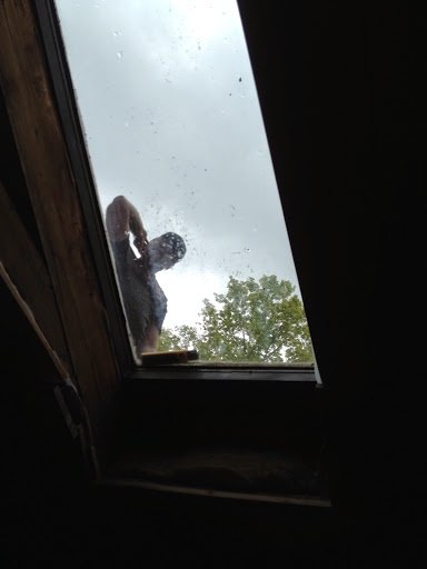 | Russell (my sister-in-law’s father who was happy to come and share his DIY expertise with us) opens up the walls on the inside of the cabin around the skylight. |