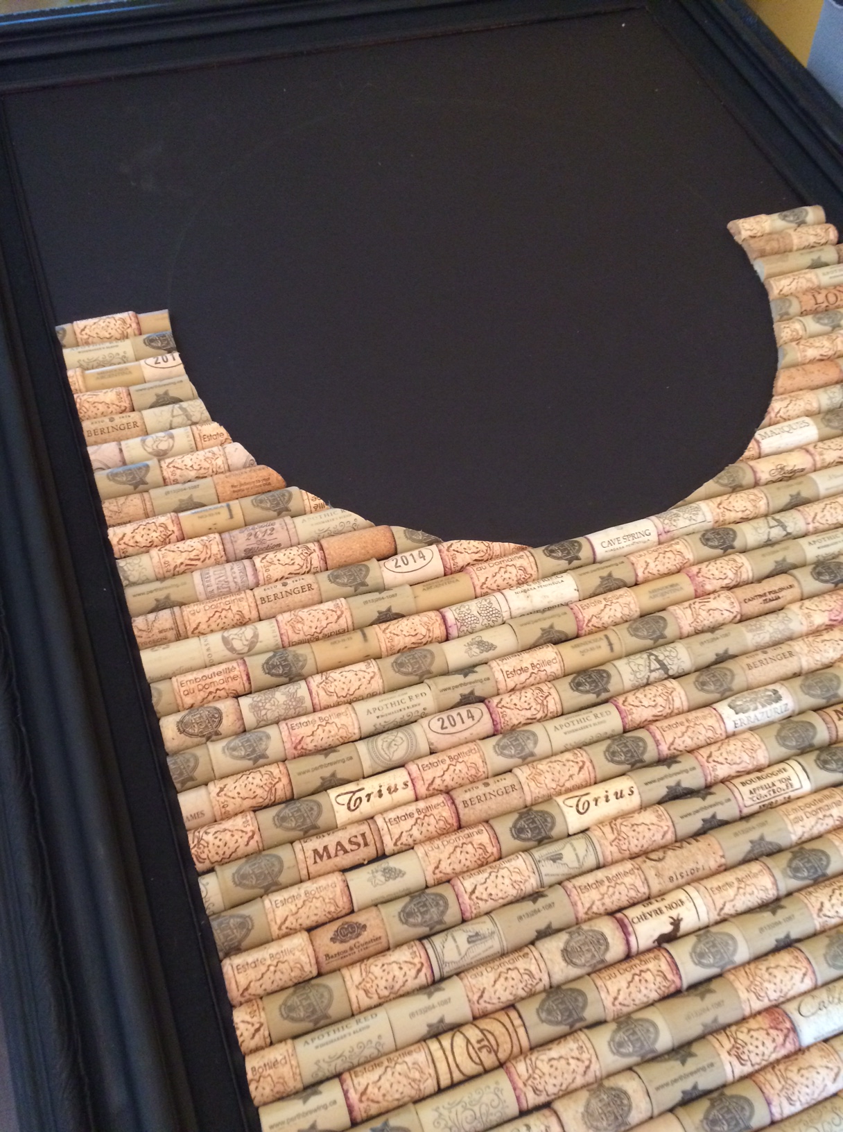 I traced a line in pencil around the dartboard and then cut and glued the corks to fit around it.