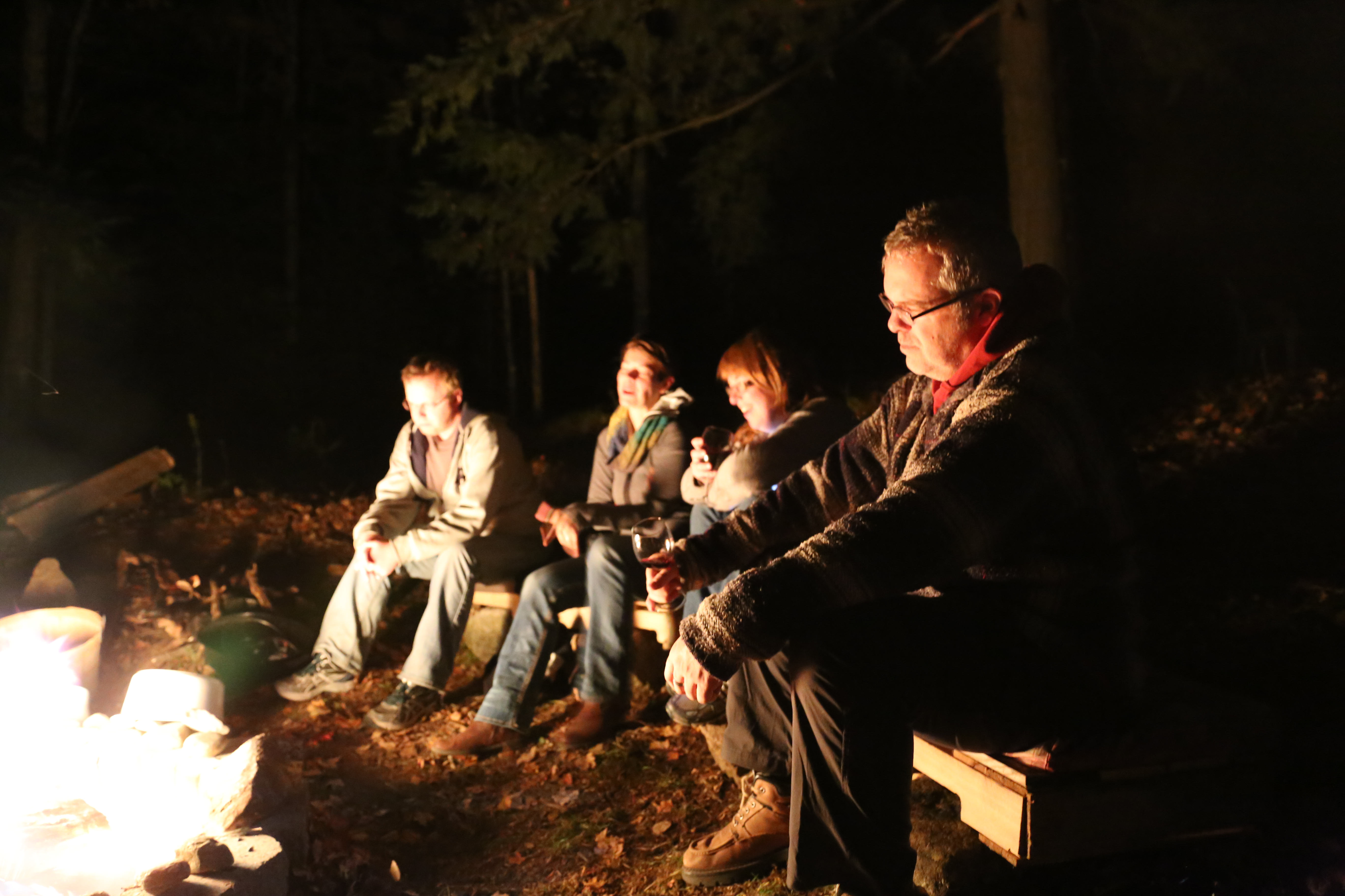 The only place we’ve had difficulty with this uneven terrain is around the campfire. Just to one side of the firepit, the land slopes upward. And while, to the naked eye, it doesn’t look that steep, as soon as you try to balance a chair on it, you realize that situation is only going to end with you toppling headfirst into the fire. Usually, it is just the three of us out there so there’s plenty of room around all the other sides of the campfire. But we’re having eight people to the cabin for Thanksgiving and we need more seating.