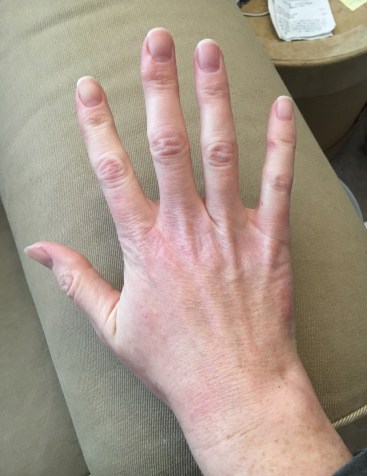 And honestly, I would say that the eczema was truly a far bigger issue in my life. It affected my hands to such a point that it was beginning to be a quality of life issue. Bob couldn’t hold my hands. The constant ache of dying skin and the blistering pain when I put cream on them were unbearable. And if you’ve ever experienced chronic pain, you know, there is no soul-killer out there quite like chronic pain and inflammation. And it was on my HANDS. I have to use my hands! Yet it was excruciating to pull gloves over them, for crying out loud. AND IT WAS WINTER!!