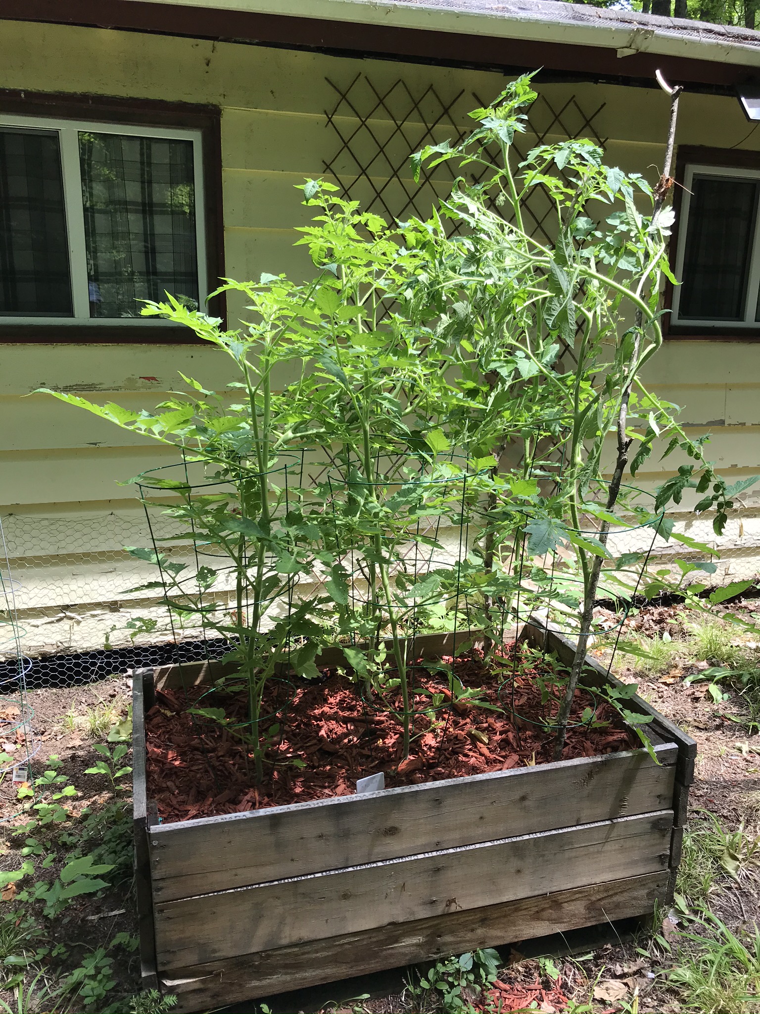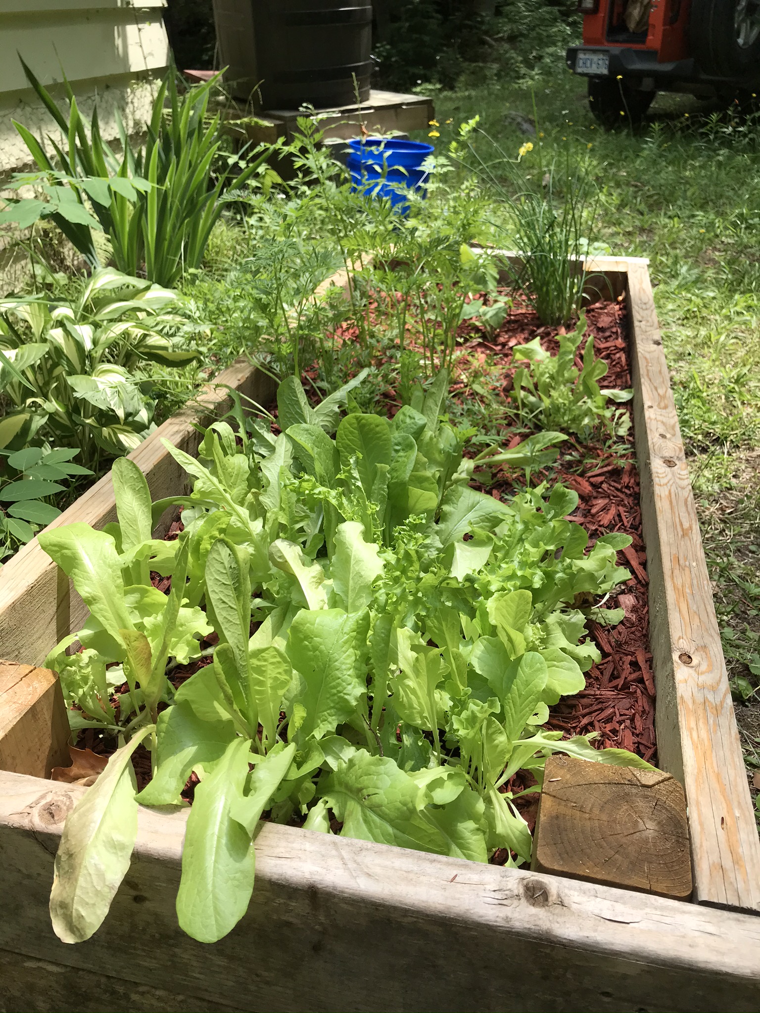 The ongoing saga of the garden.  This was in fact our first project and I wrote about how and why we started it in my previous post The Harvest Apron.  Well, with the heat and the regular rainfall, the garden has exploded.  We built raised beds first thing in the spring and planted our seedlings at the end of May.  Other than that, all we had to do was water, fertilize and prune when needed.