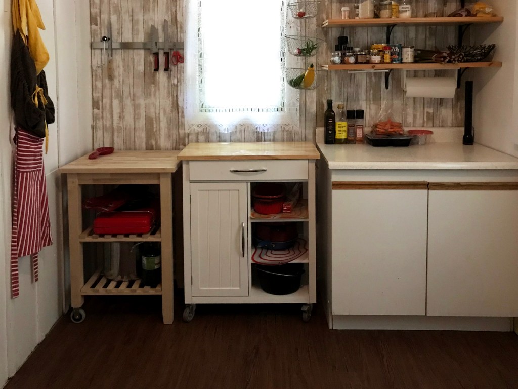 While we try to keep costs low in other parts of the house (reusing, repurposing, upcycling, getting donations from friends, etc.), I don’t mind spending money on new items for a project like this.  So I bought another island from Ikea as it was really the only thing I found that would fit into this little space.  It also has wheels and I feel better about being able to move these islands out from the wall to clean more easily.