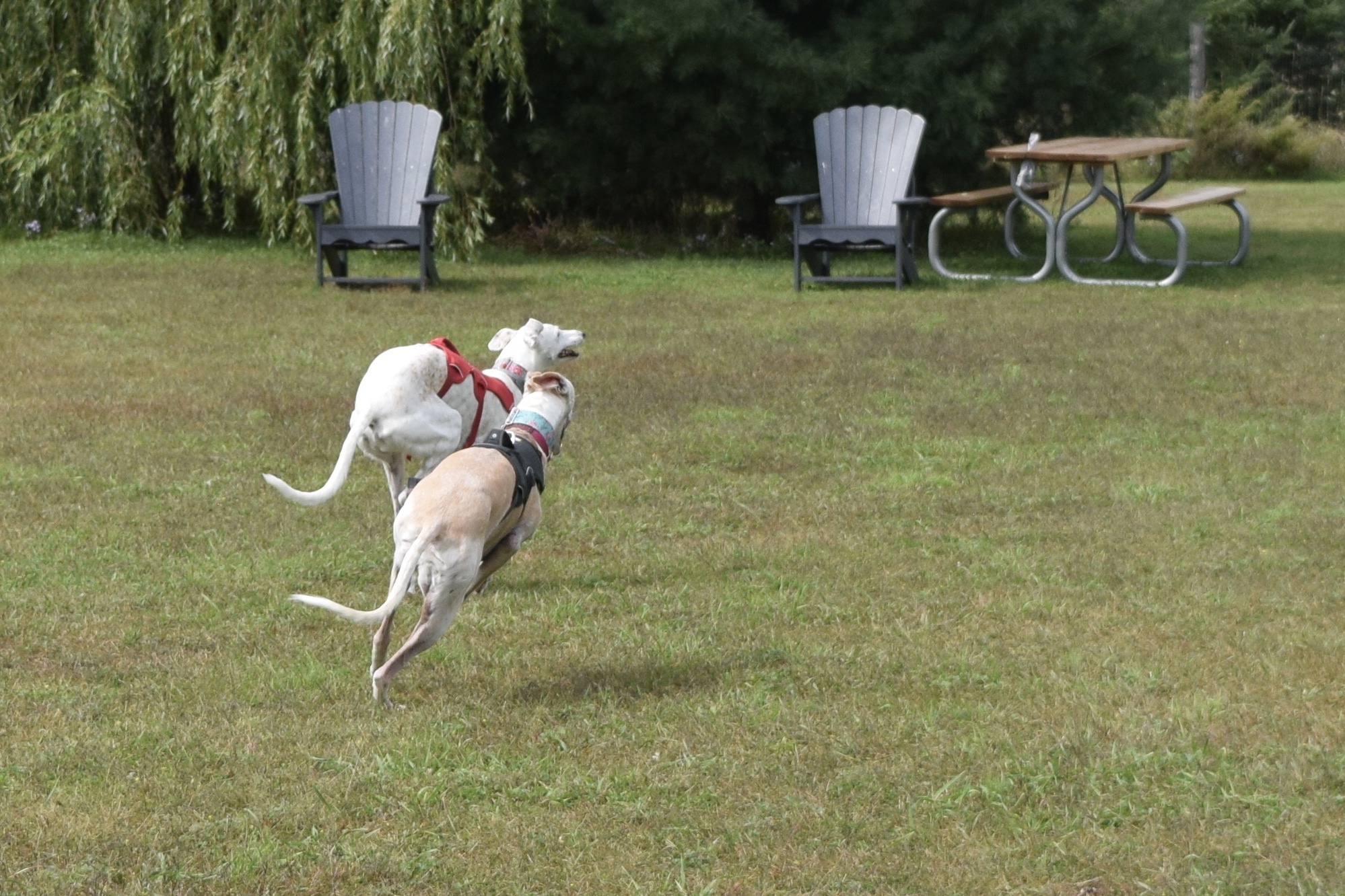 Needless to say, because of this, dog parks aren’t always successful with our dogs but we are very lucky in our area to have several private and reservable dog parks that are fully fenced. Country Canines Play Park, a large, wide-open spaces perfect for the greyound/galgo sprint and Finnobi Forest, a forested area with trails, perfect for more exploratory play. If you are anywhere near these play parks, then you really should reserve a time to check them out. They are AMAZING!