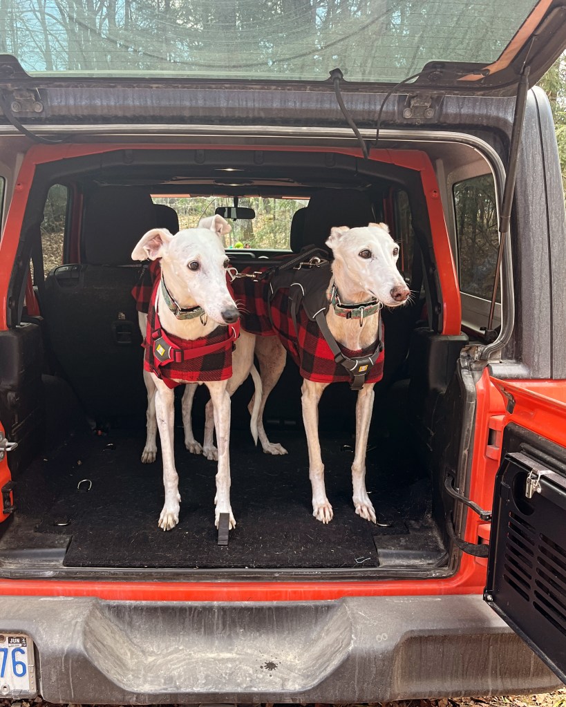 Summer is here and we are so very much looking forward to spending more time at our tiny cabin this summer with our two galgos Amity and Hestia. These two senior ladies (11 years old!) are Spanish Greyhounds from Spain and love our little cabin in the woods as much as we do.