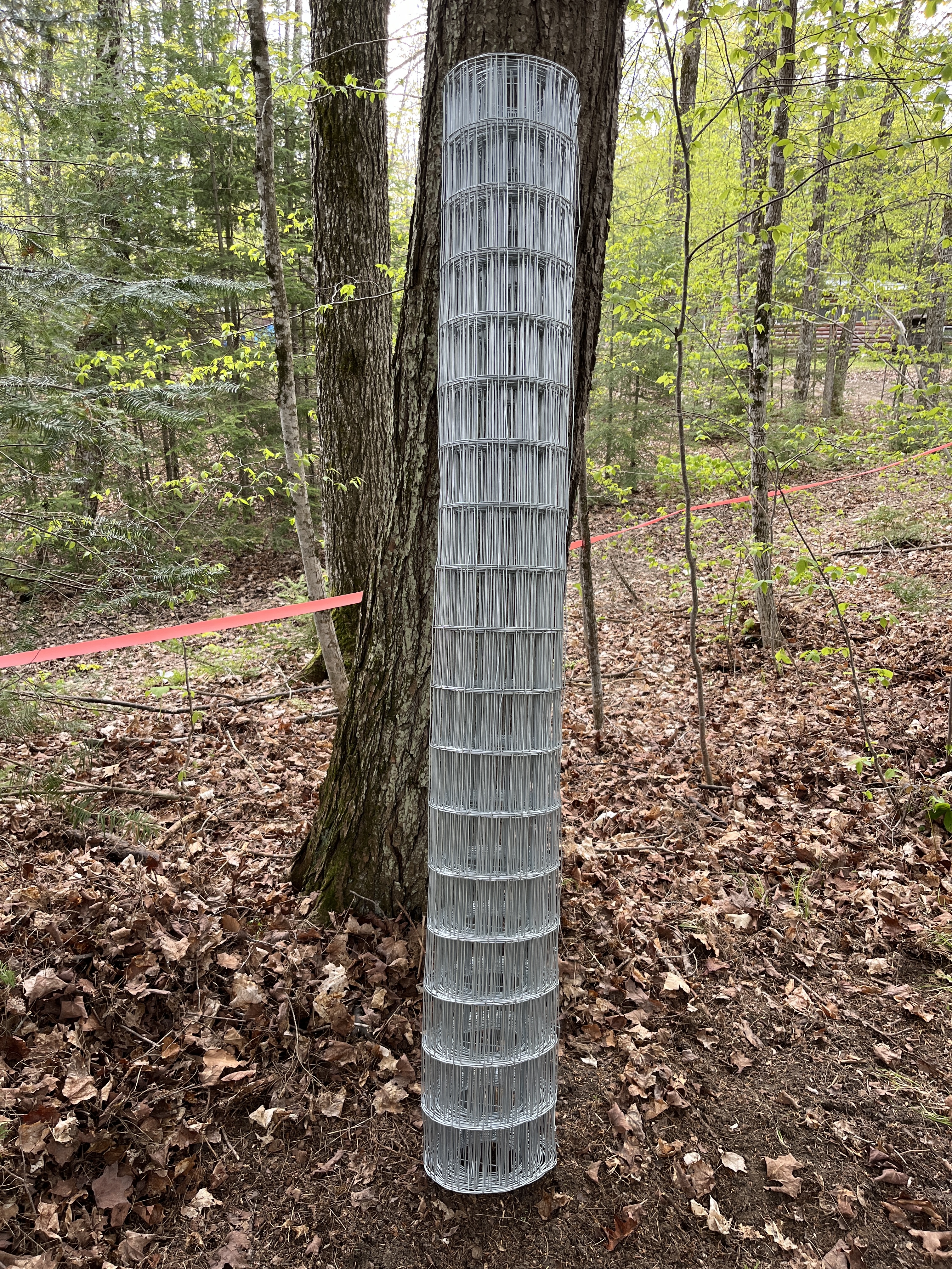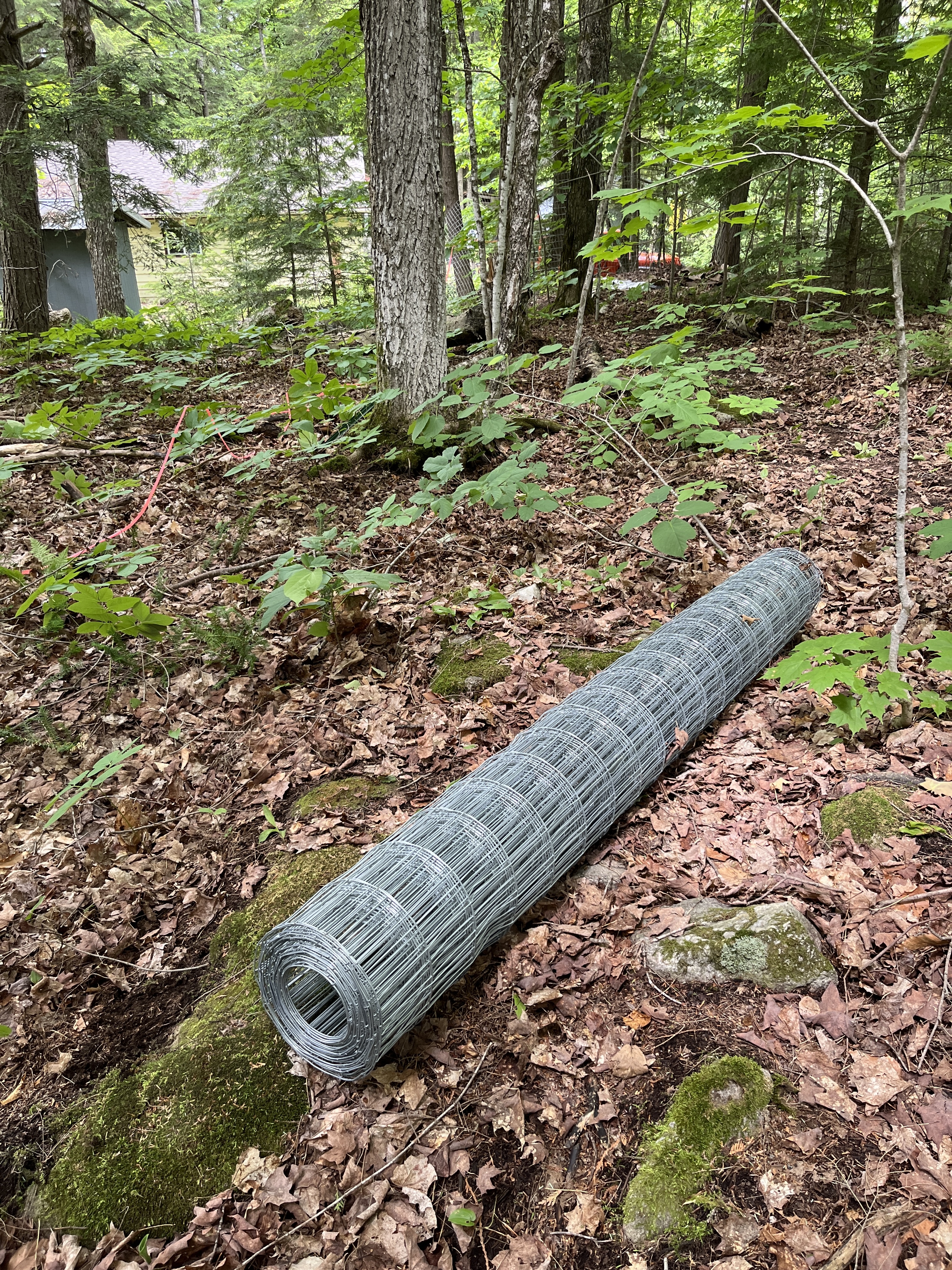 At first we were hoping to fence the entire wooded space but we came up against two obstacles – the cost and the terrain. Our land is not flat and the low part is really wet with lots of deadfall. A quick measurement of the perimeter had us looking at close to $1300 for just the wire fencing. In these times of frugality, that was just too much for us.